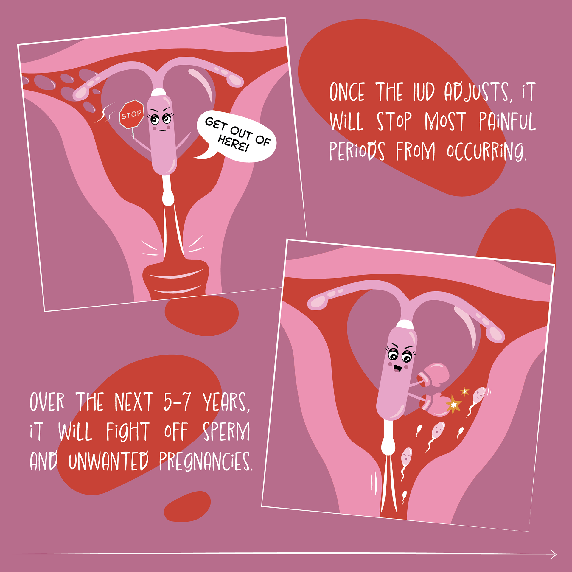 Contraception is cool! I created a storyboard about the life of a hormonal IUD. To help break down the process of this form of birth control I use a mix of illustrations and text to help tell the story in a cute and light hearted way. This project lives in the form of an Instagram carousel, which you can check out!